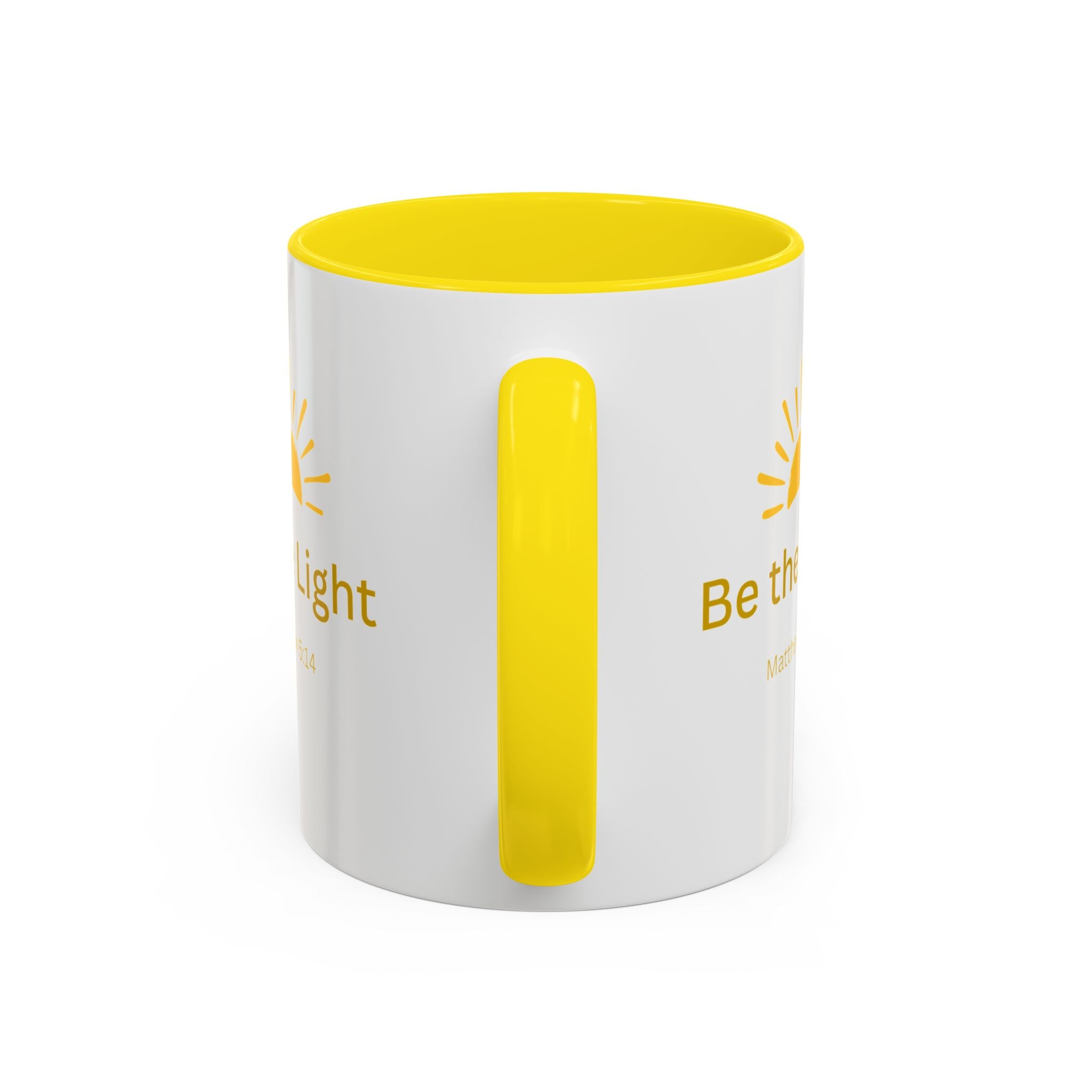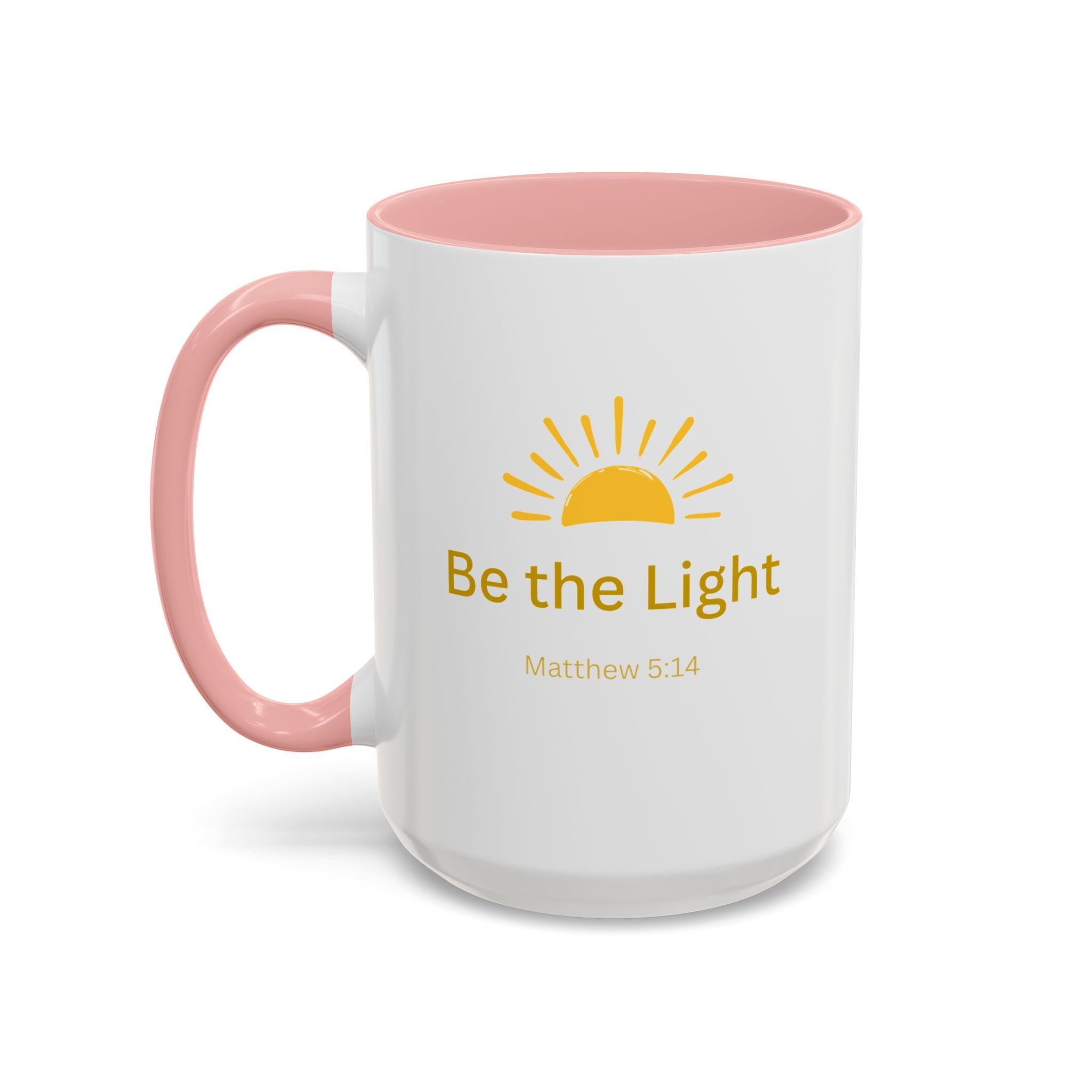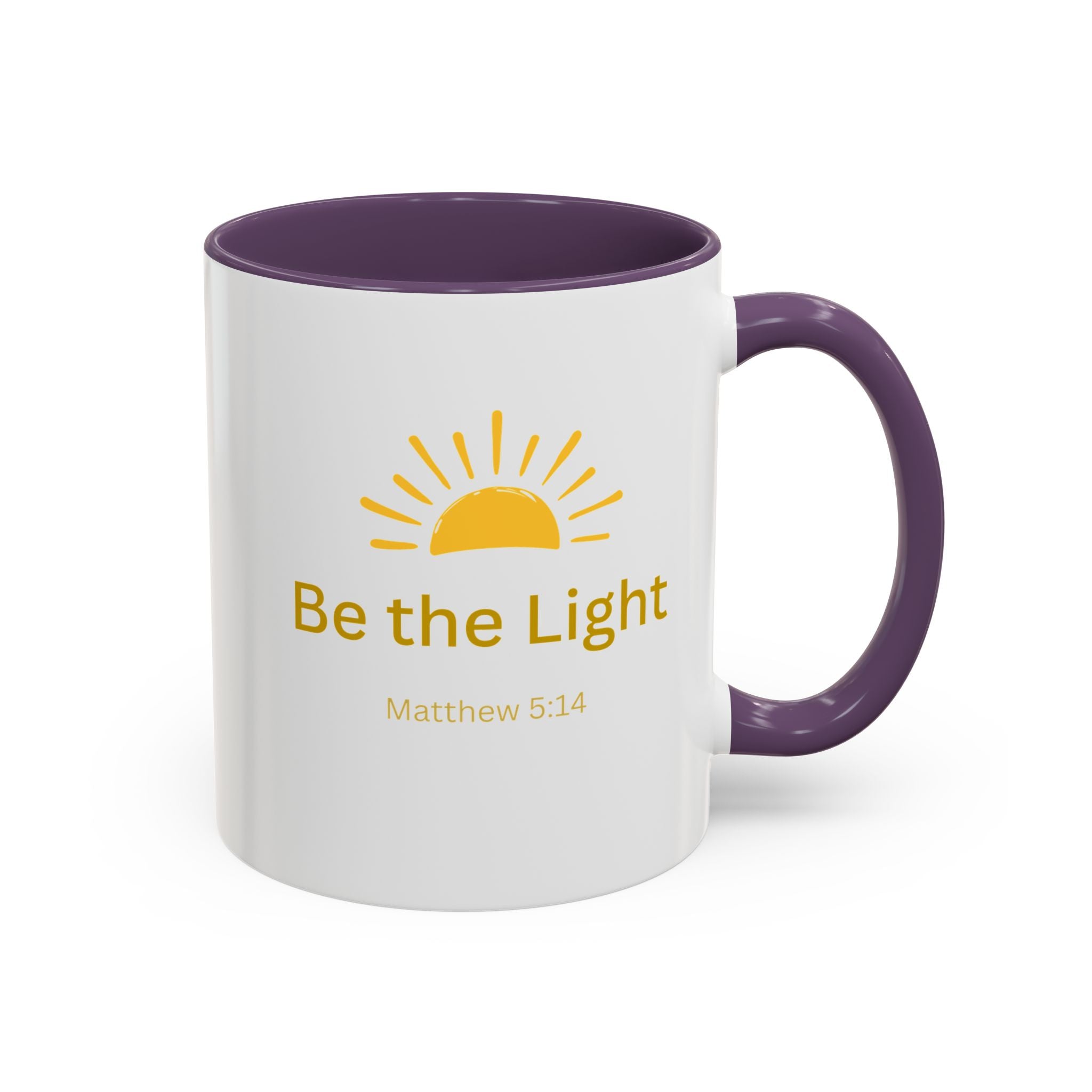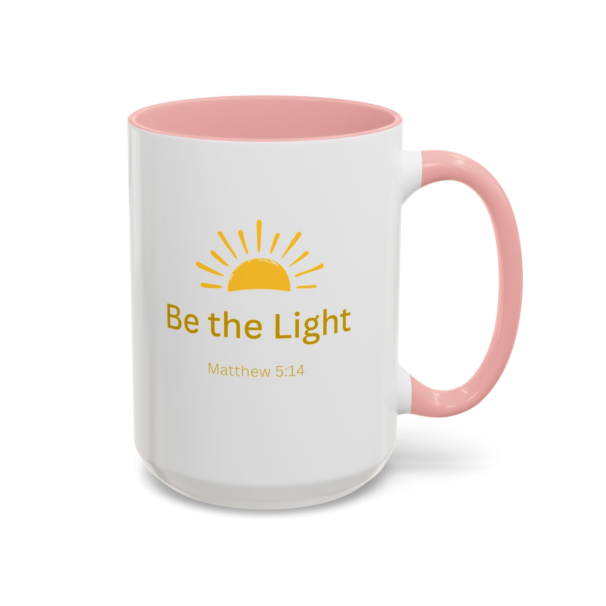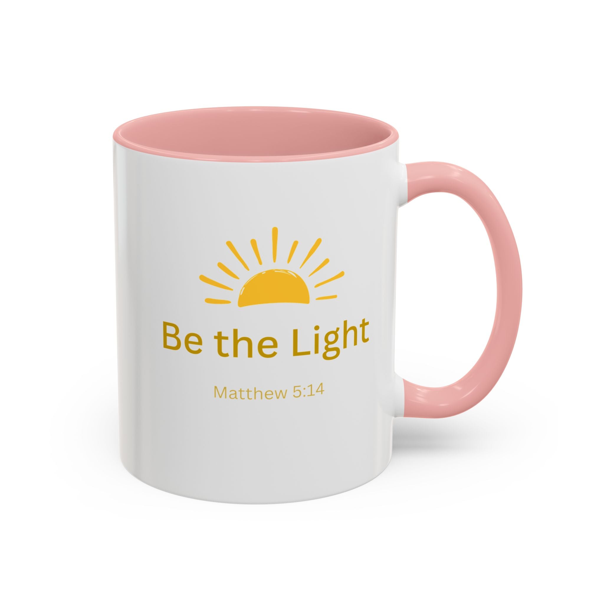 This ceramic coffee mug carries a gentle, uplifting message ’Be the Light’ beneath a warm, rising sun, bringing quiet encouragement to your morning routine. The white exterior contrasts with a colored interior and handle for a cheerful pop, while the glossy finish keeps the sun graphic bright and crisp. It’s a simple, faithful reminder to start the day with kindness, perfect for moments of reflection, study, or casual conversation over coffee or tea.