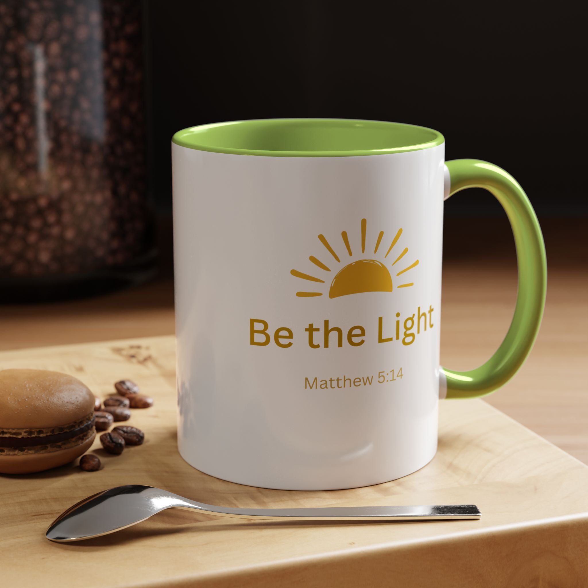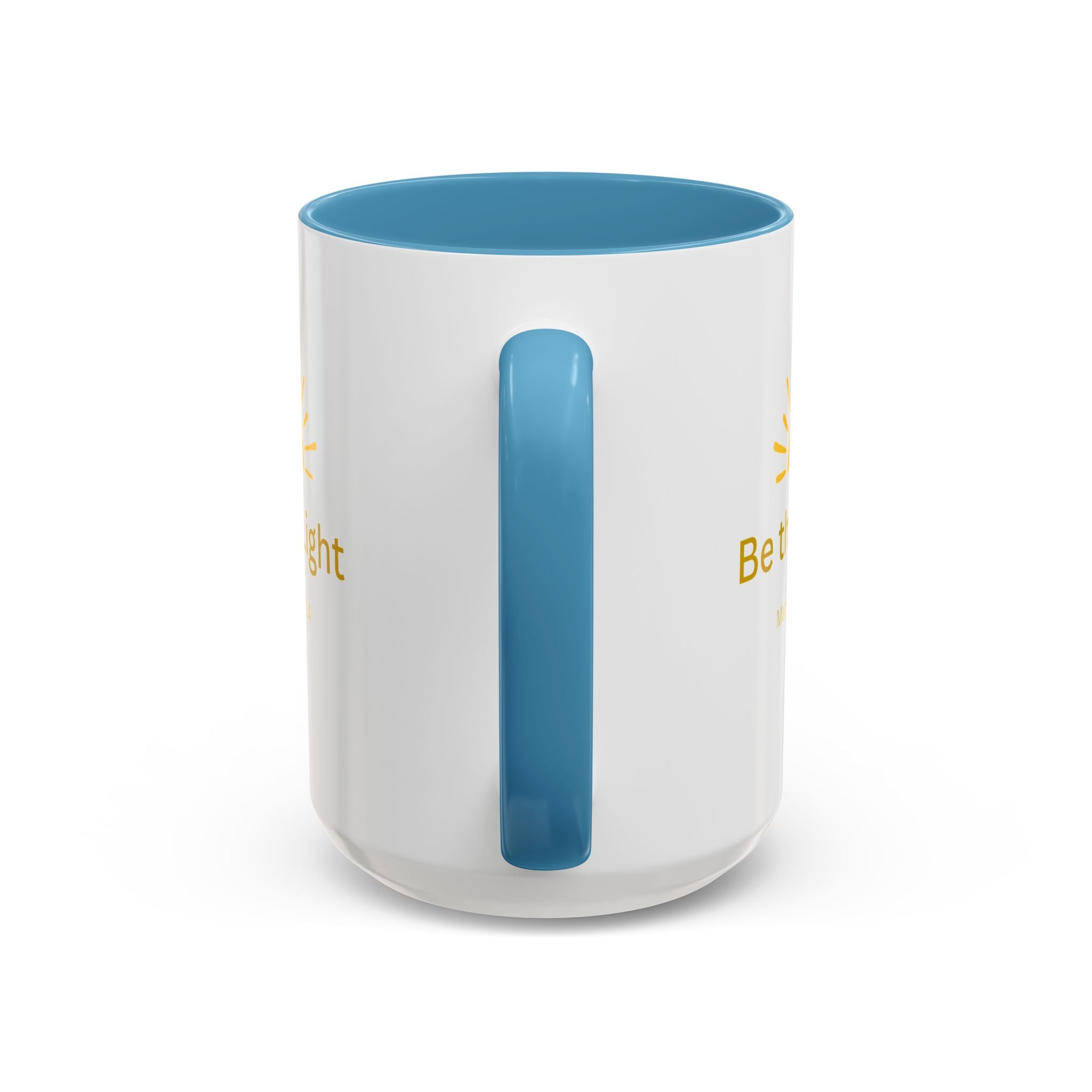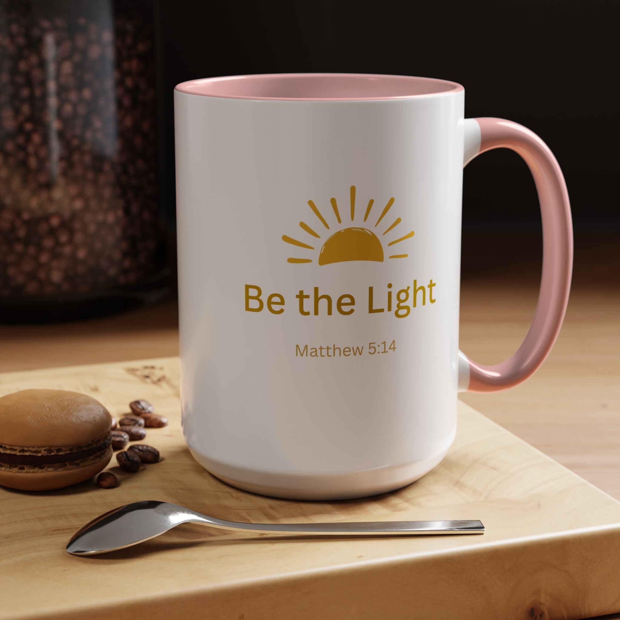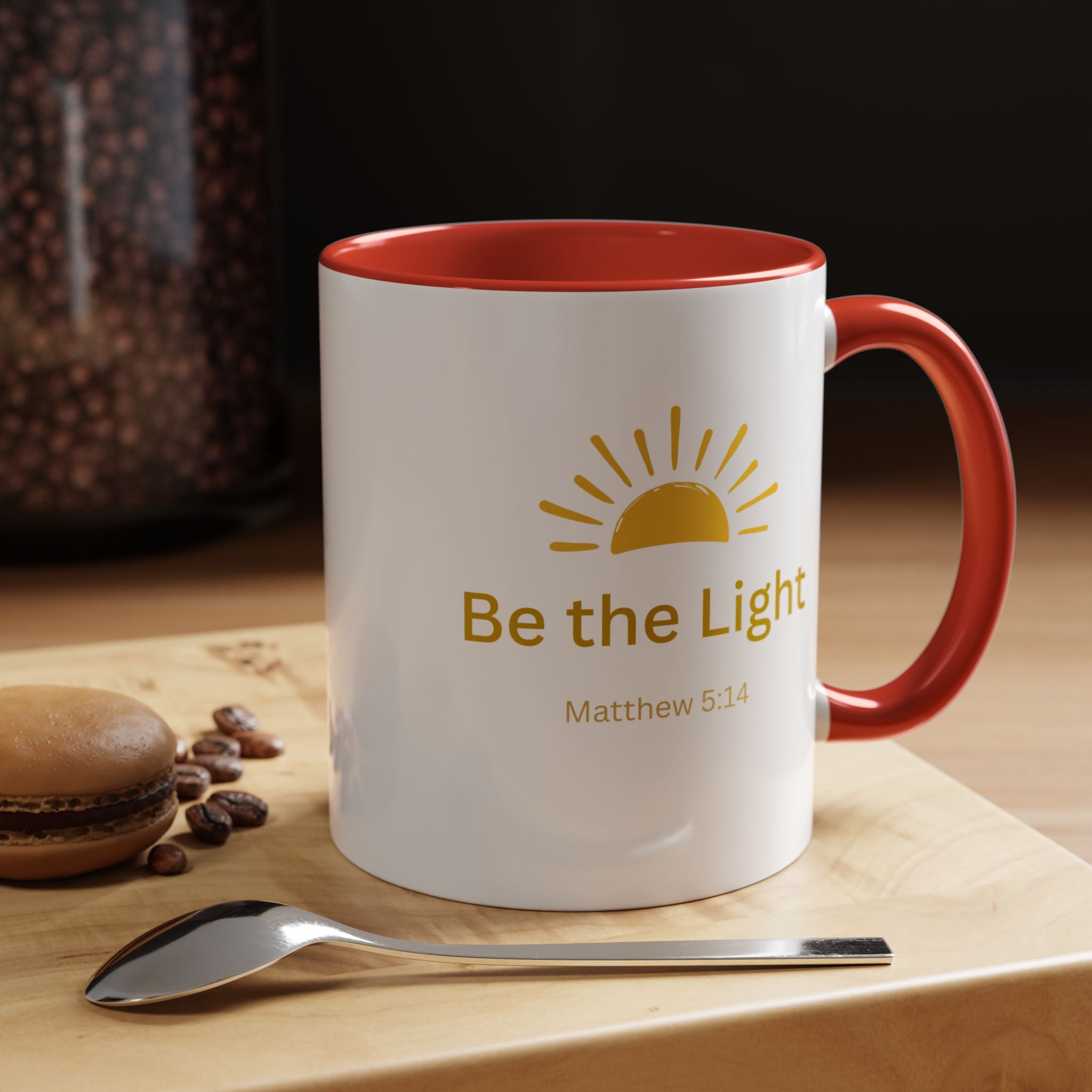 This ceramic coffee mug carries a gentle, uplifting message ’Be the Light’ beneath a warm, rising sun, bringing quiet encouragement to your morning routine. The white exterior contrasts with a colored interior and handle for a cheerful pop, while the glossy finish keeps the sun graphic bright and crisp. It’s a simple, faithful reminder to start the day with kindness, perfect for moments of reflection, study, or casual conversation over coffee or tea.