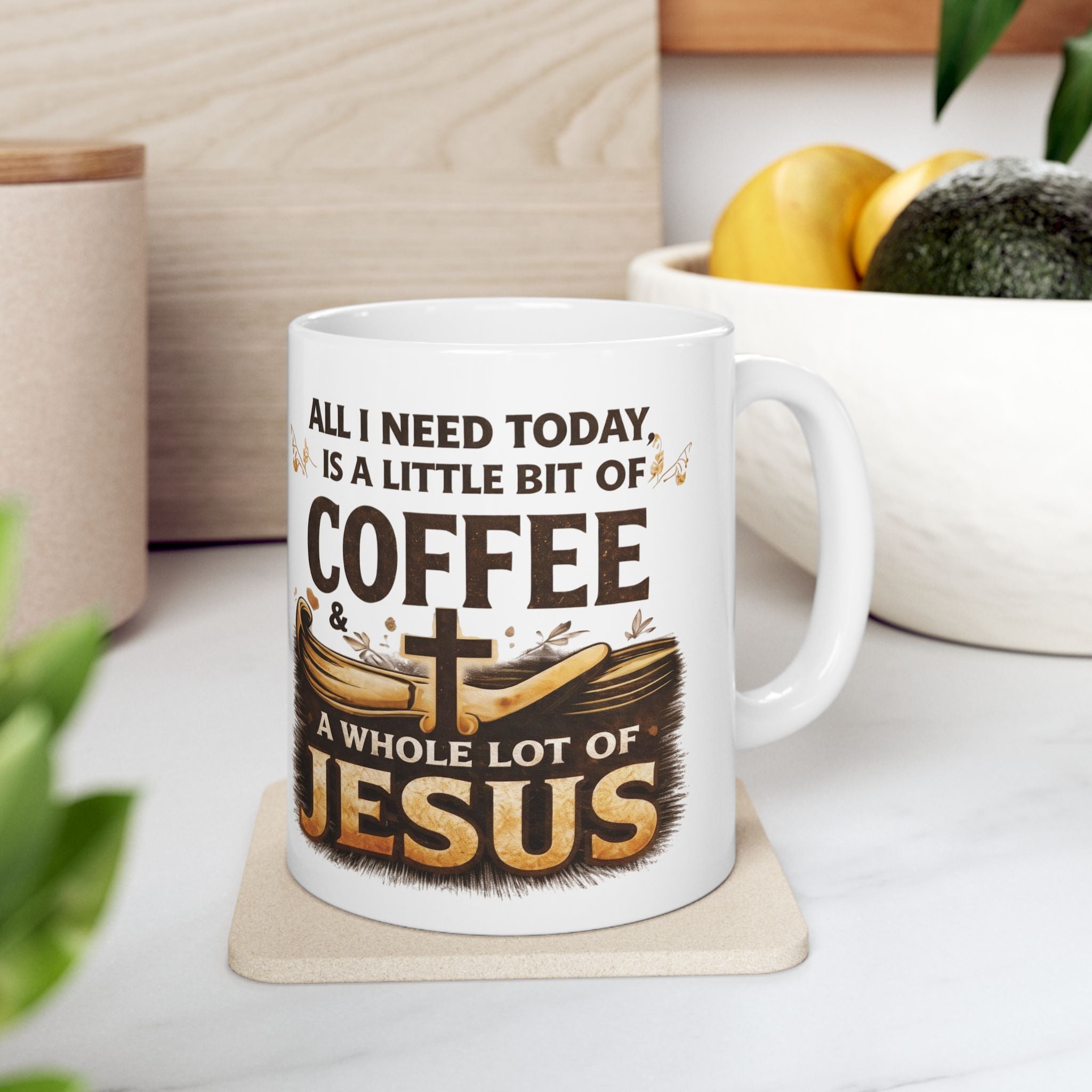 Coffee & Jesus Ceramic Mug: Inspirational Religious Coffee Cup (11oz, 15oz)