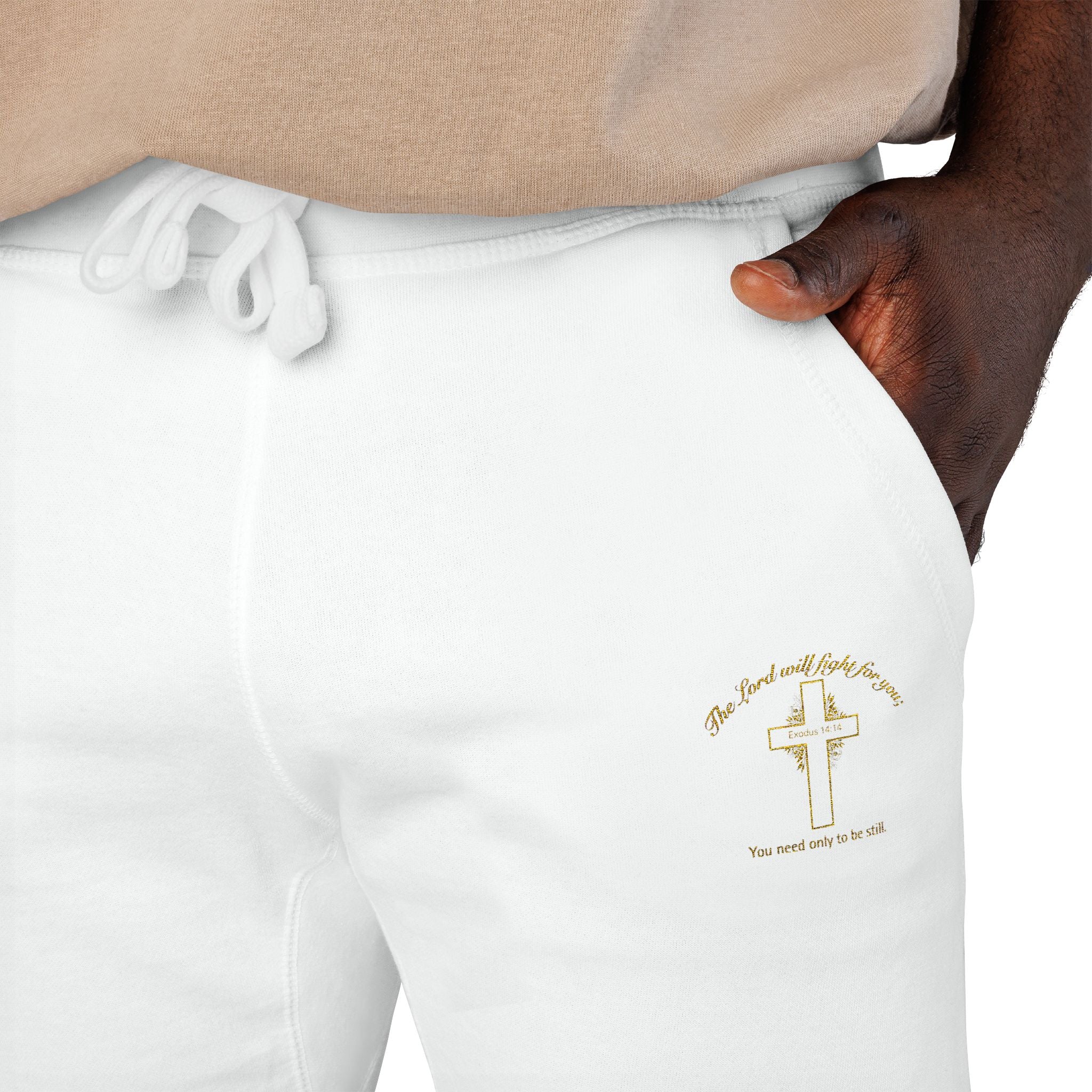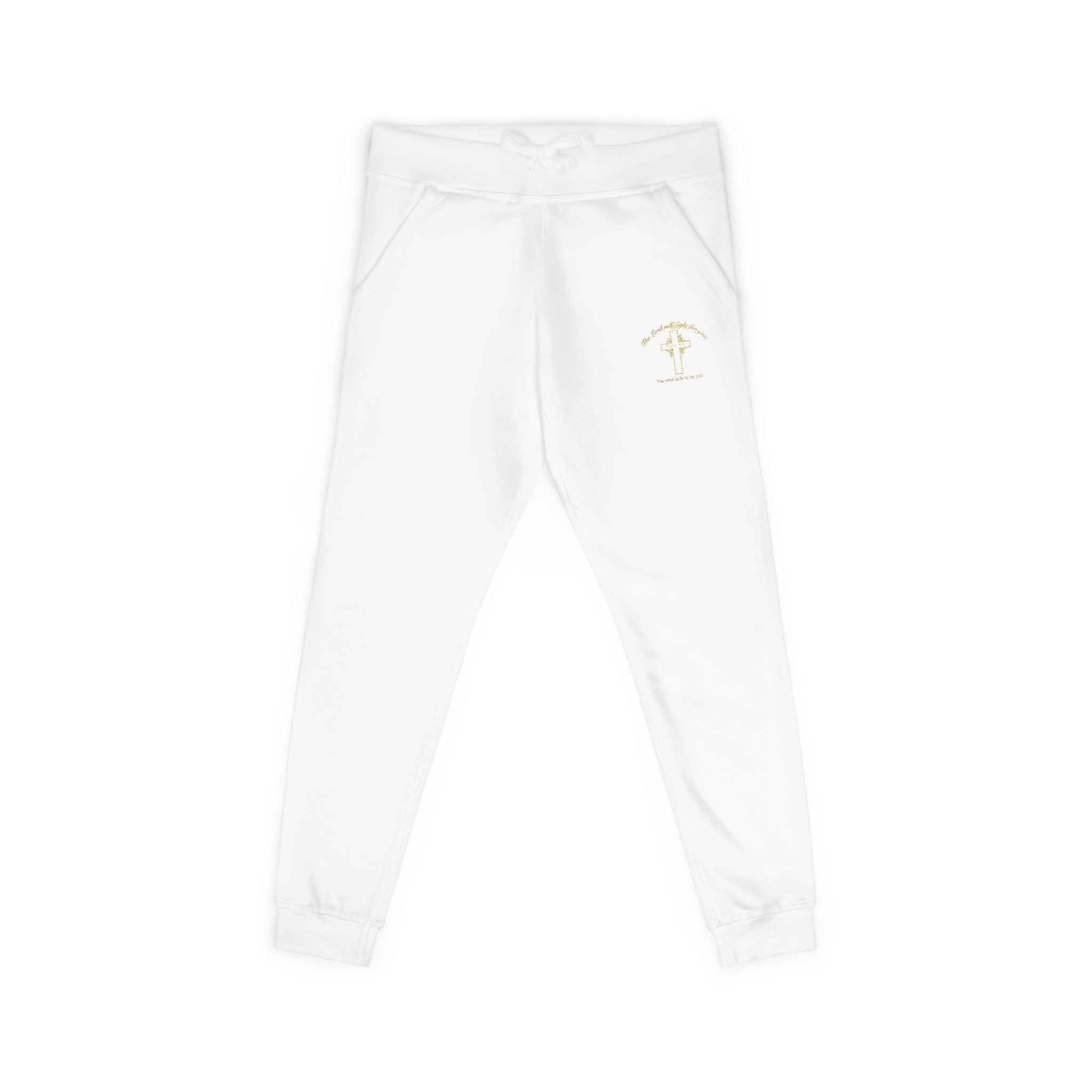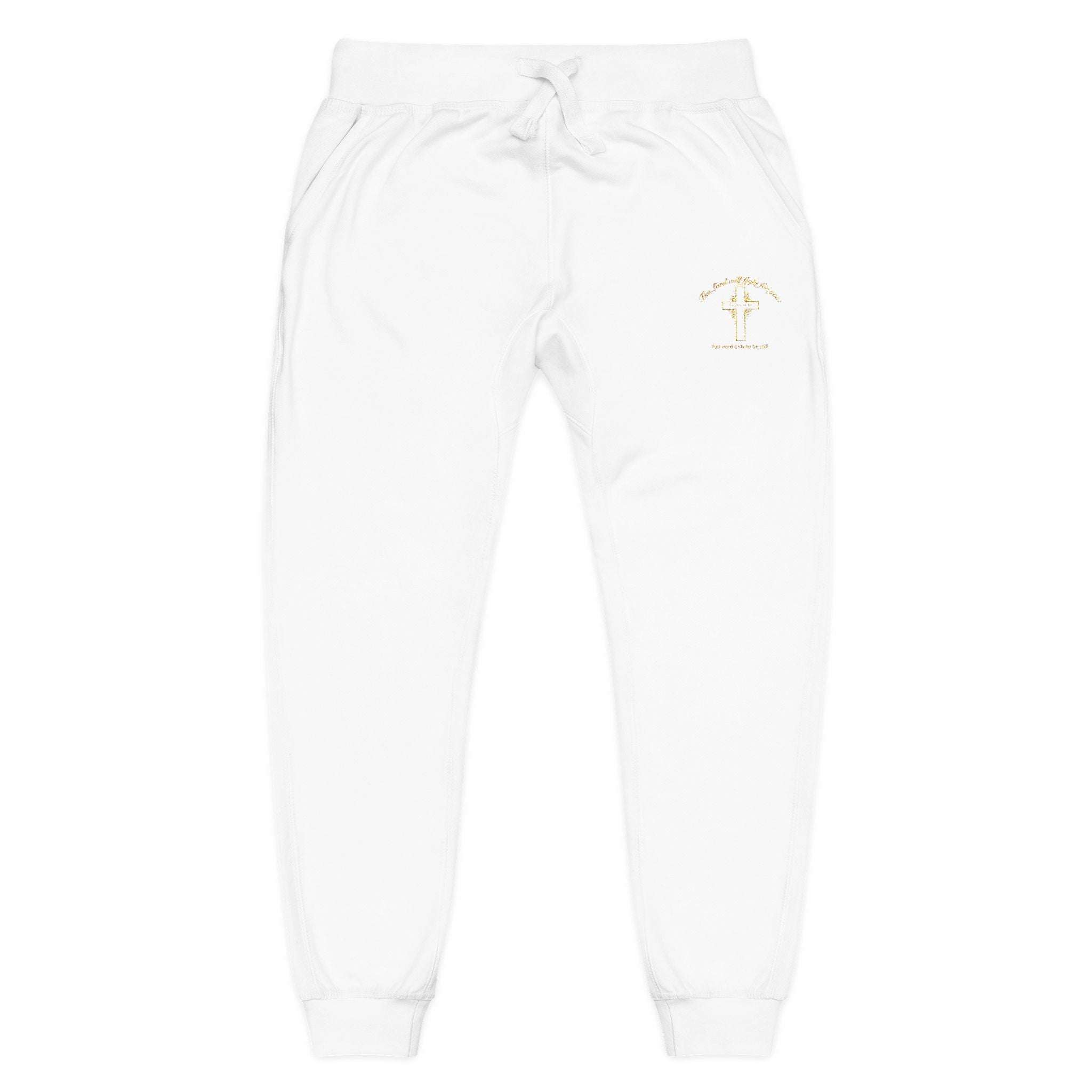 Embroidered 'The Lord will fight for you' Fleece Sweatpants. Soft White Joggers