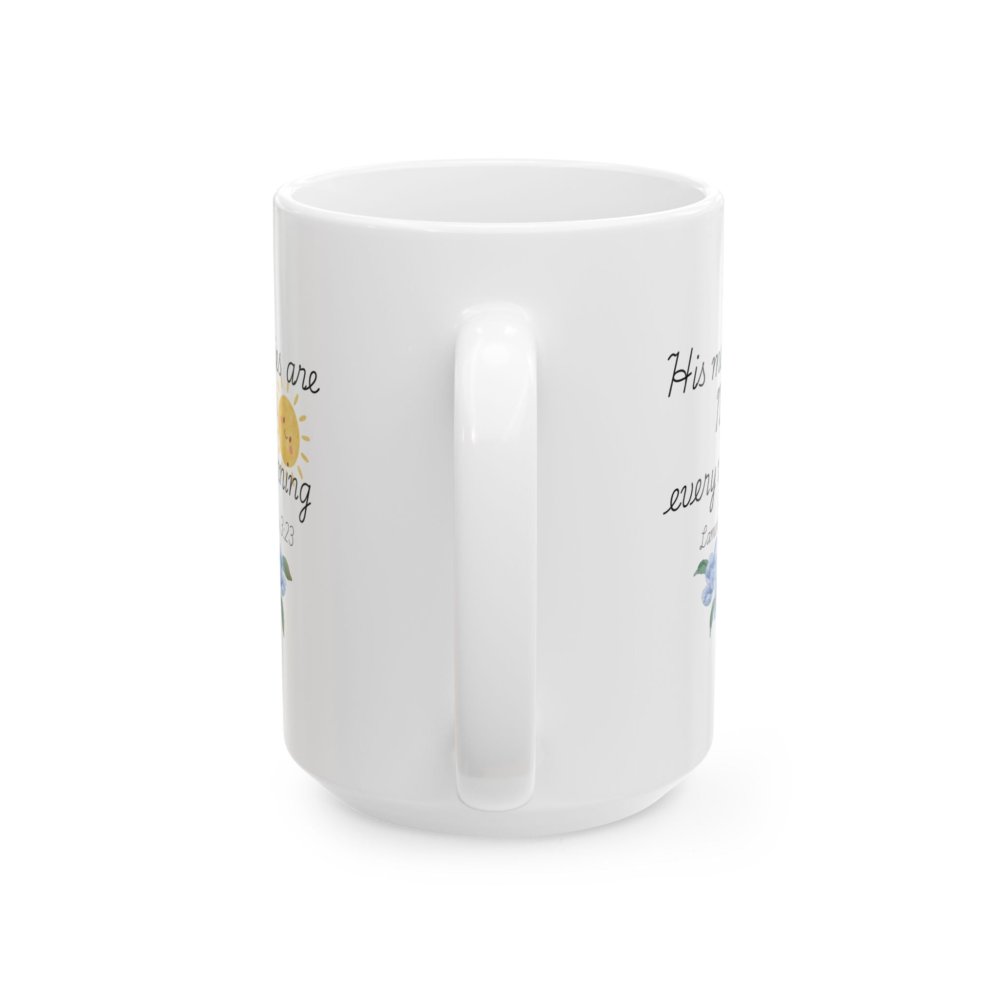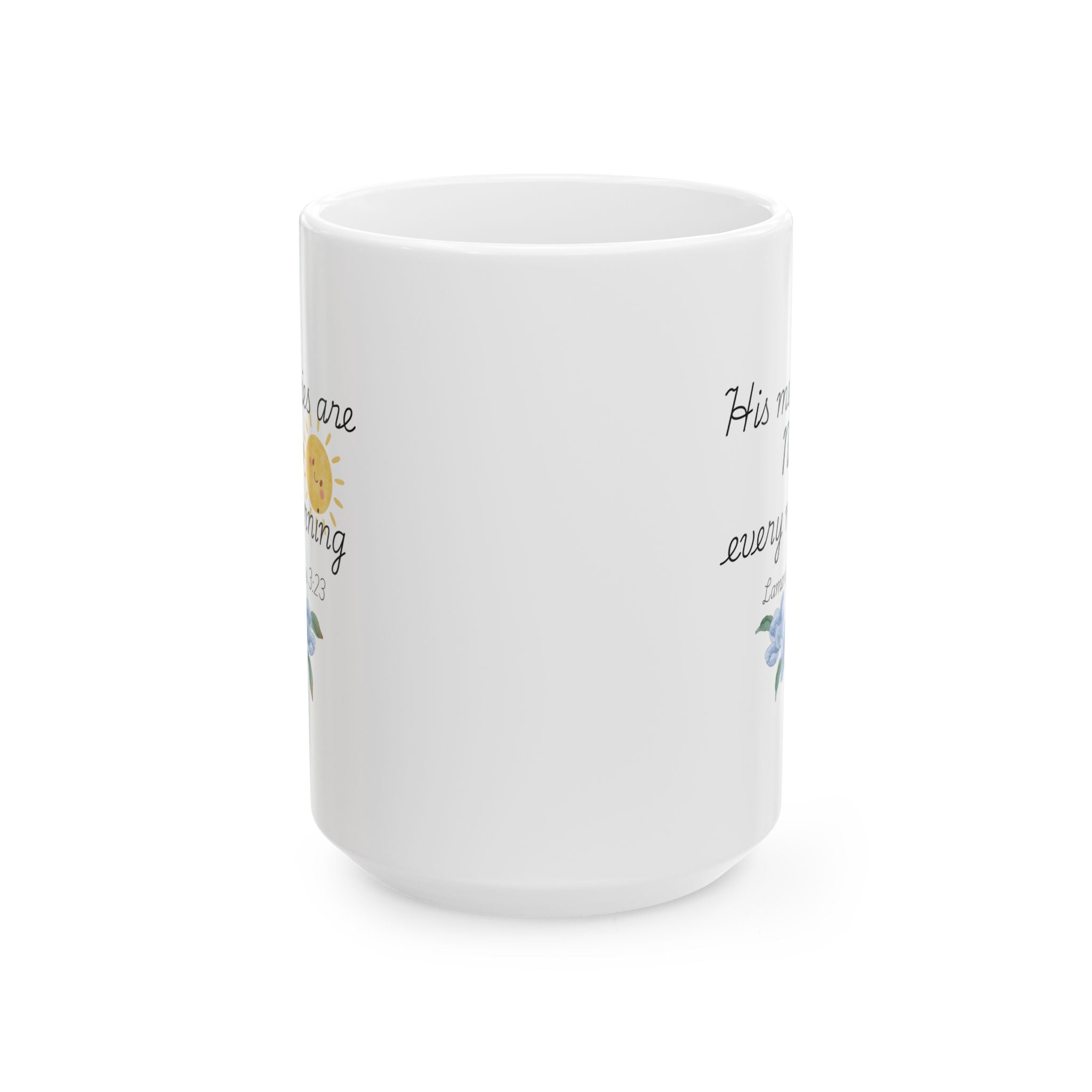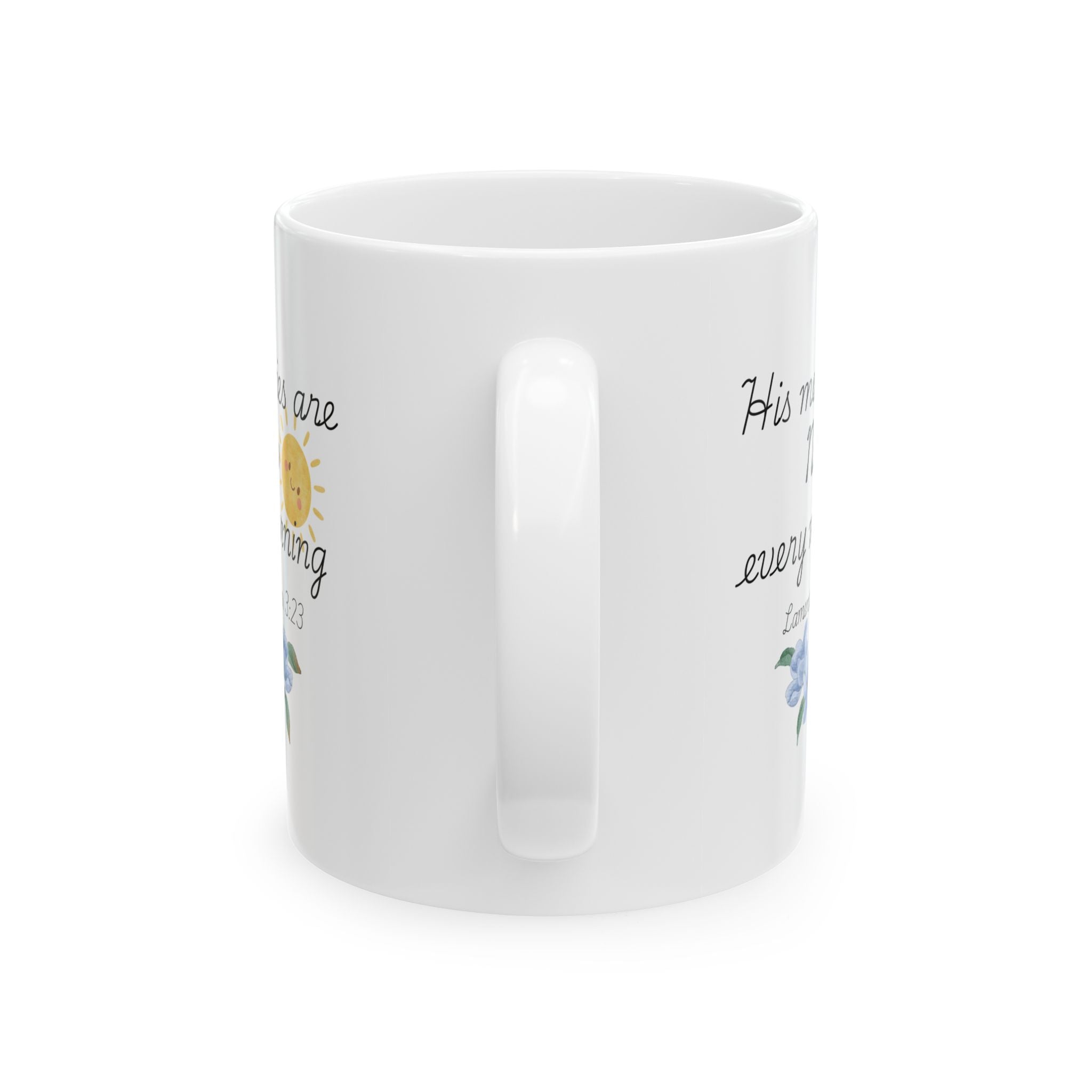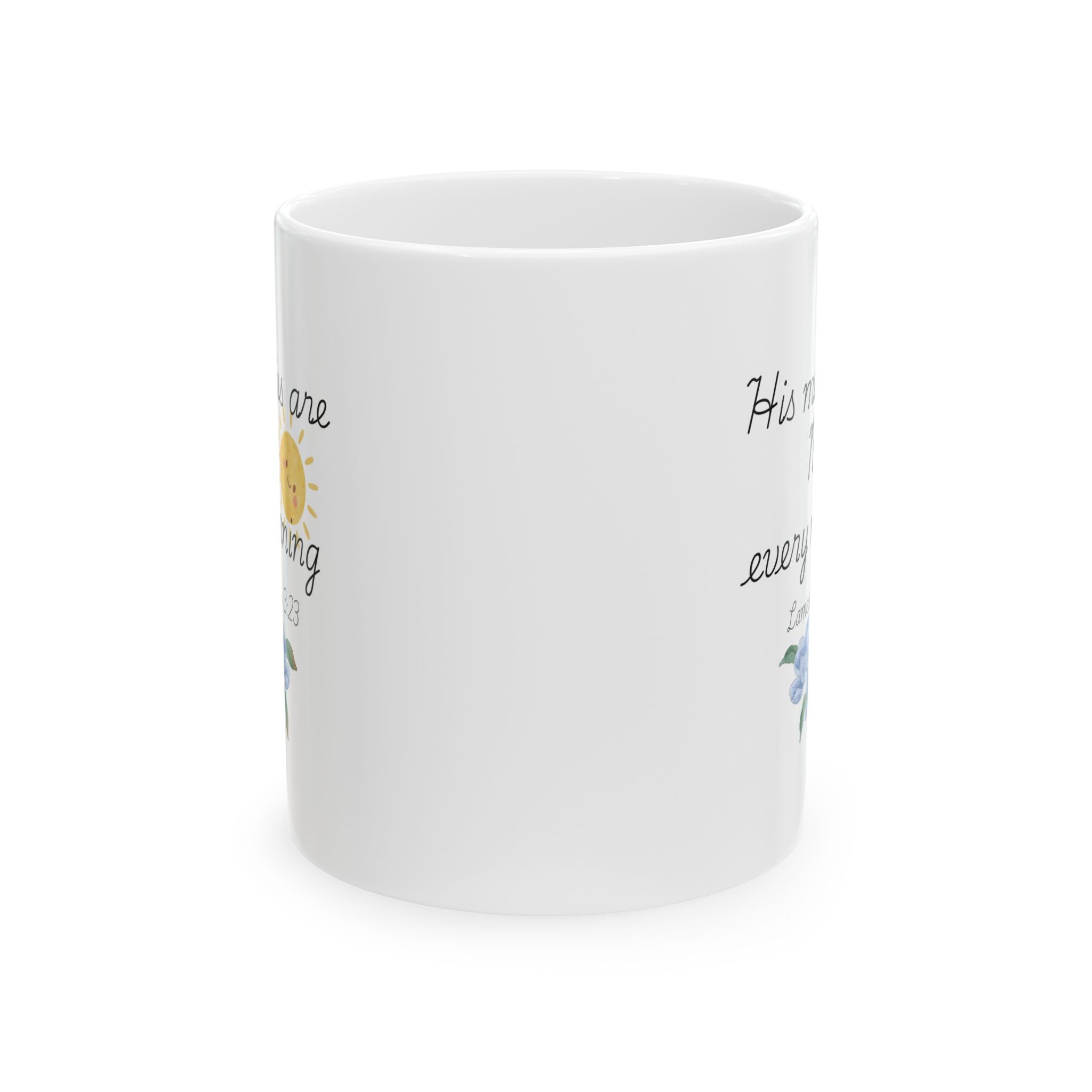 His Mercies Are New Every Morning Ceramic Mug, Inspirational Bible Verse Coffee Cup (11oz/15oz)