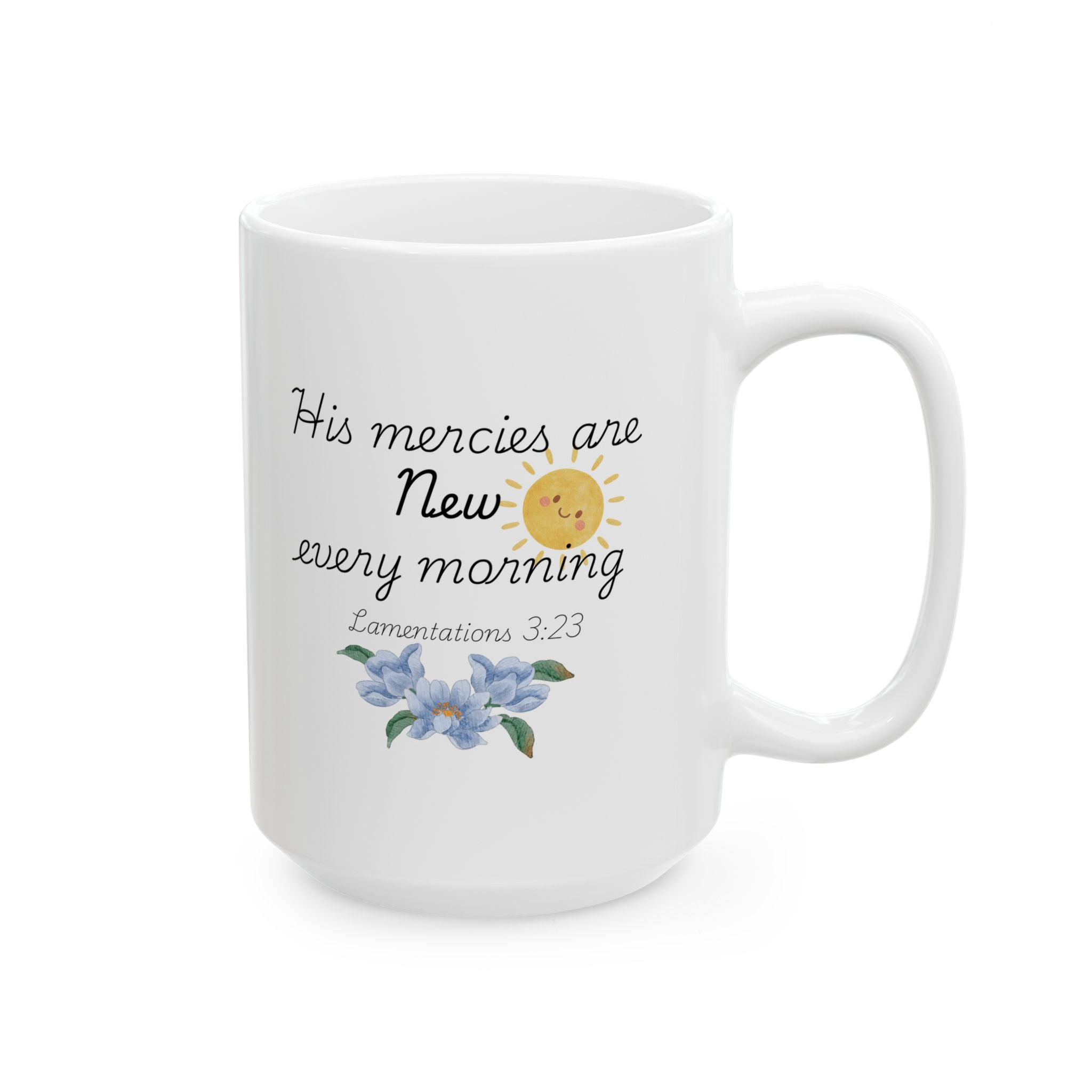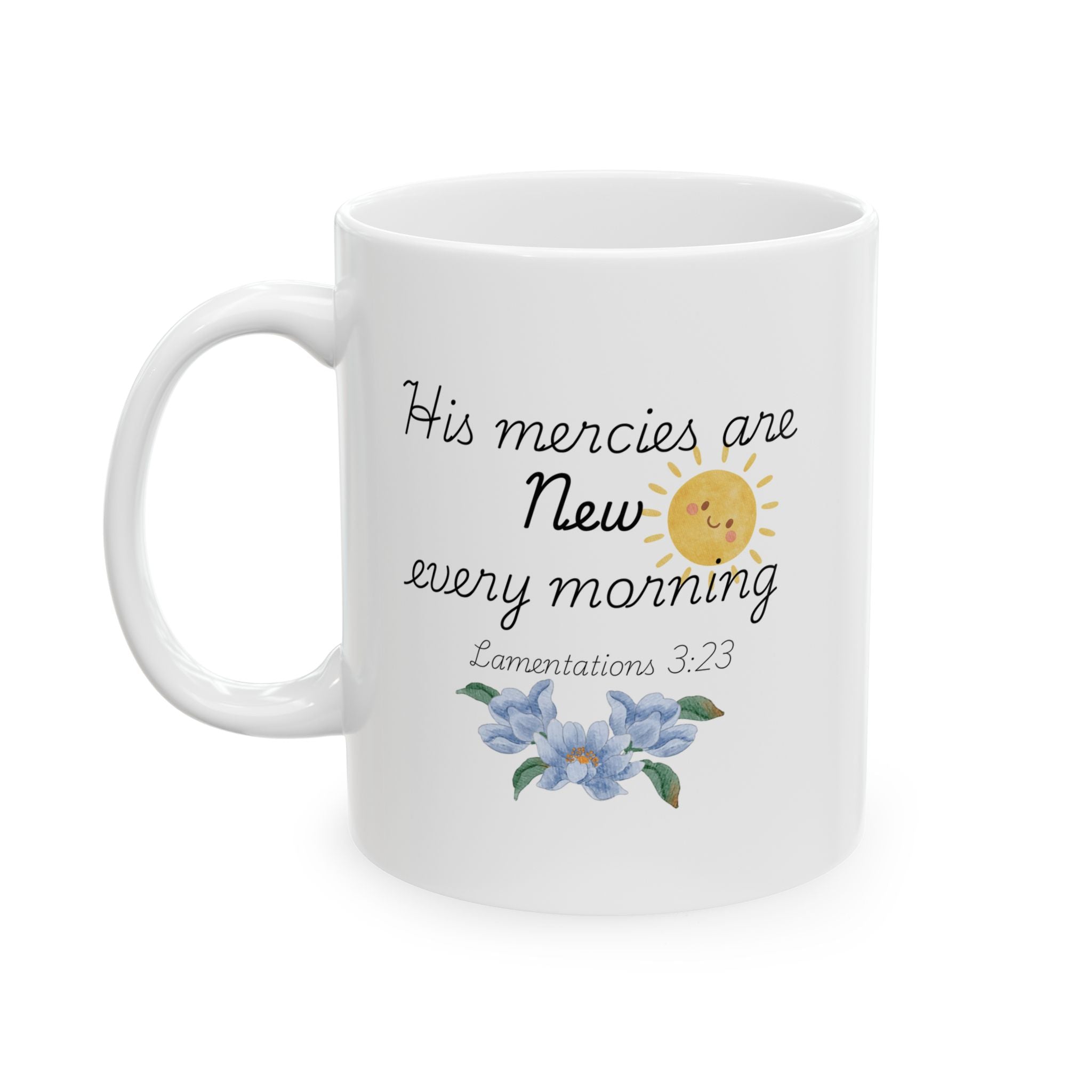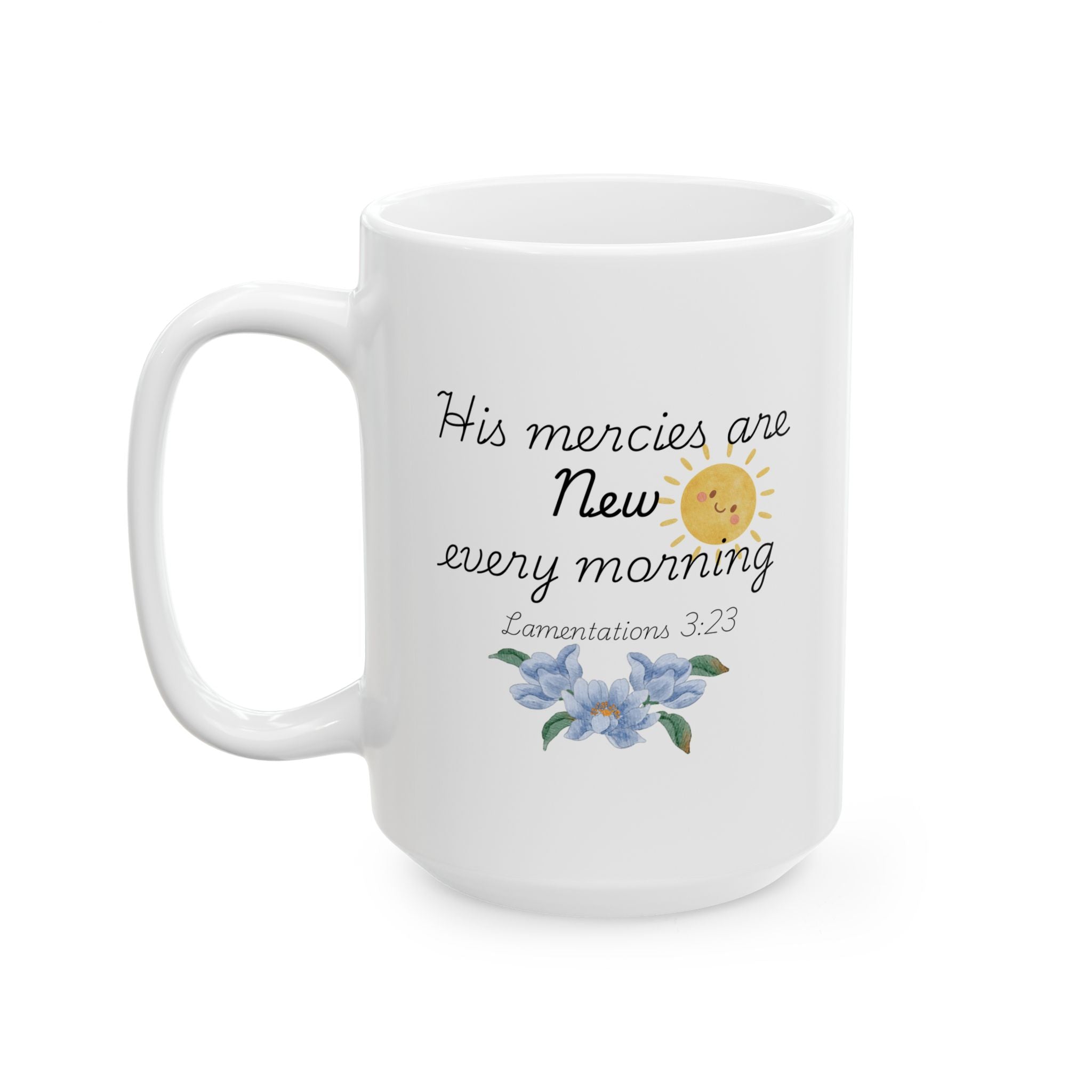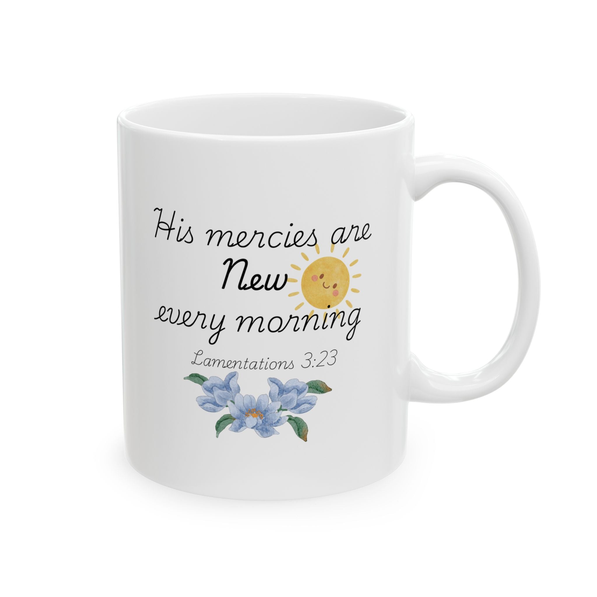 His Mercies Are New Every Morning Ceramic Mug, Inspirational Bible Verse Coffee Cup (11oz/15oz)