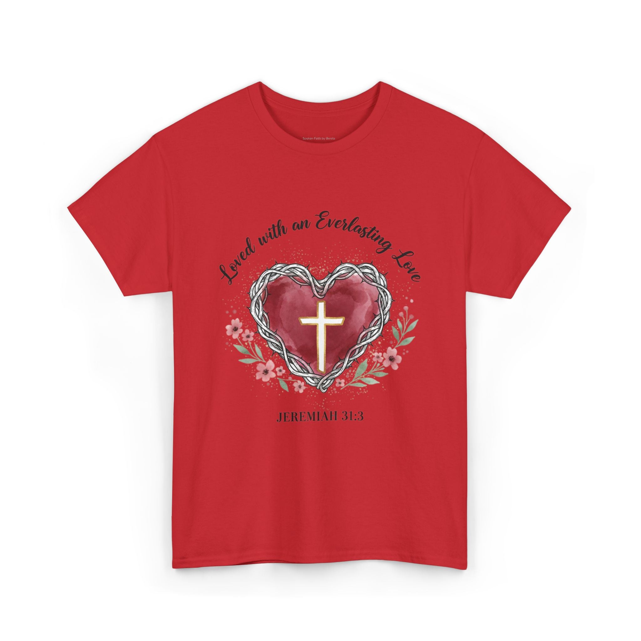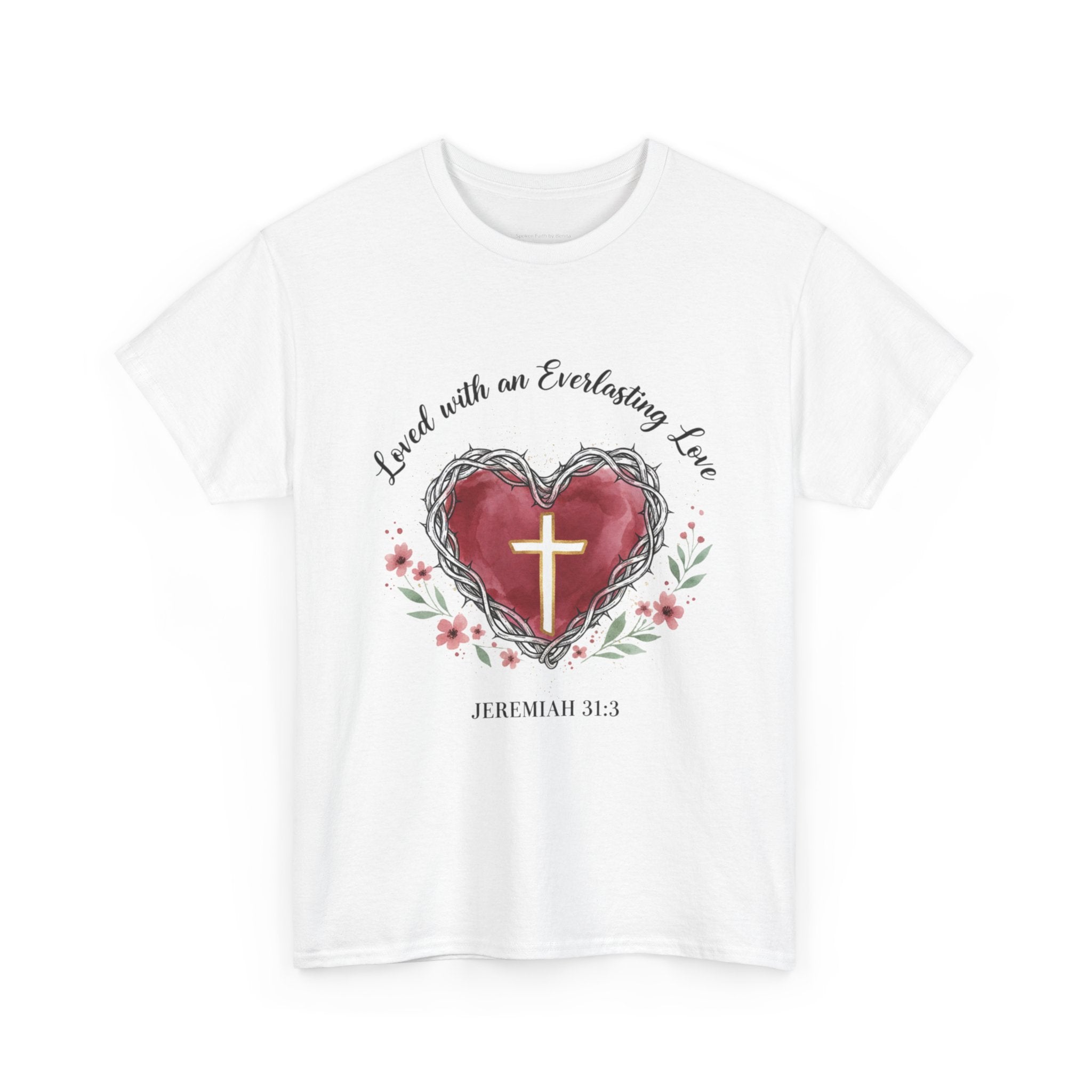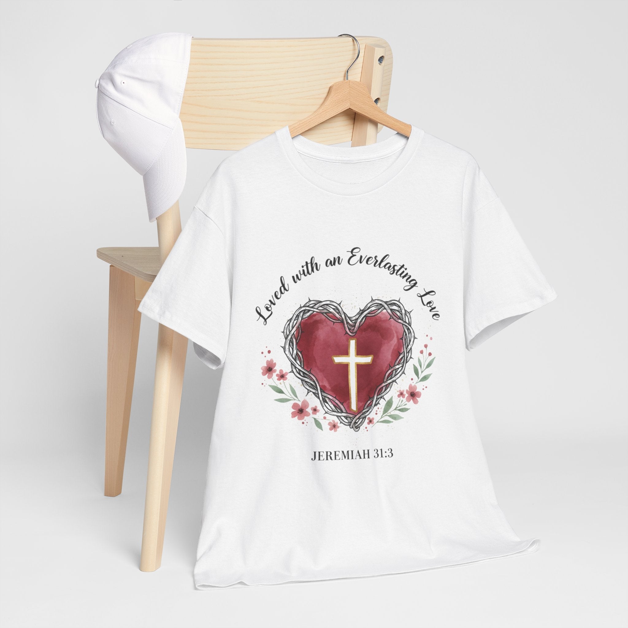 Christian Heart T-Shirt "Loved With an Everlasting Love" Jeremiah 31:3 Faith Tee