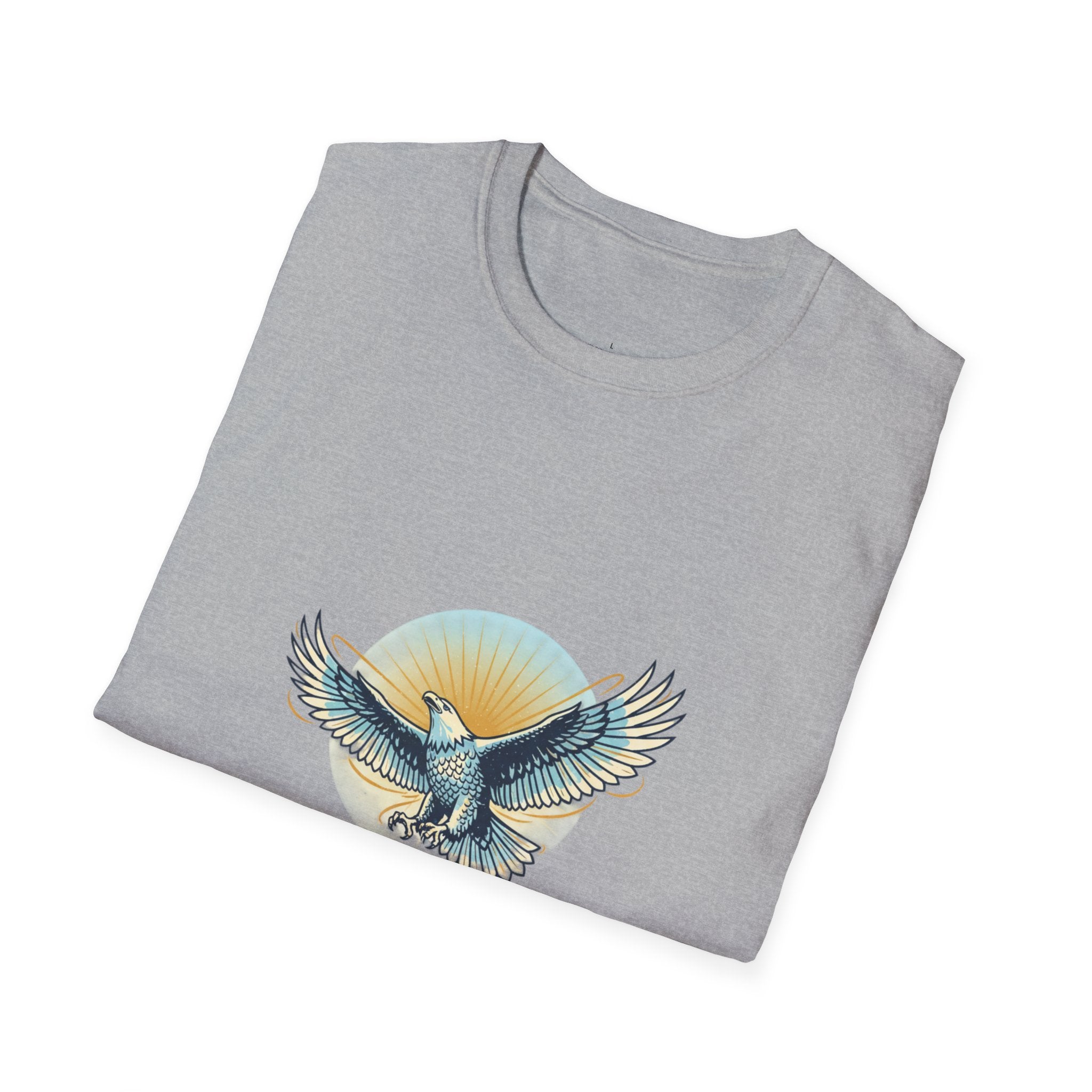 A soft, breathable tee that feels like a quiet morning flight. The design centers on a soaring eagle set against a warm sun, subtle vintage tones and fine linework give it a lived-in, soulful look. Wear it on slow weekends, sunrise hikes, or when you need a reminder that strength and calm can coexist. The crew neck and classic cut sit comfortably under a jacket or on their own, and the smooth ring-spun cotton keeps the print crisp and wearable through frequent washes. Thoughtful details, tear-away label, reinforced shoulder tape, and a shape that holds its form, make this shirt one you’ll reach for again and again.
